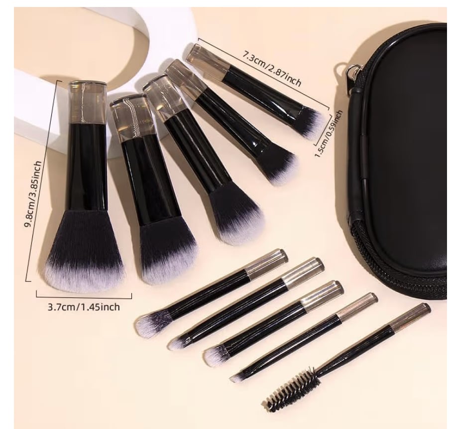 10pcs Easy-taken Mini Full Complete Function Cosmetic Brushes Kit with Brush Pouch (black)